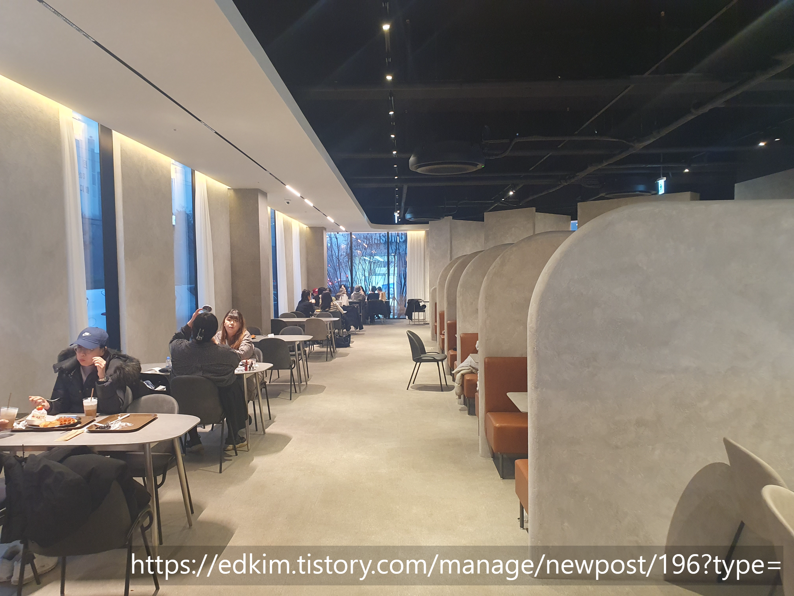 창가 쪽 자리도 있고, 반대편엔 이렇게 파티션이 설치되어 있어서 일행들과 대화를 나누기도 좋아 보입니다.