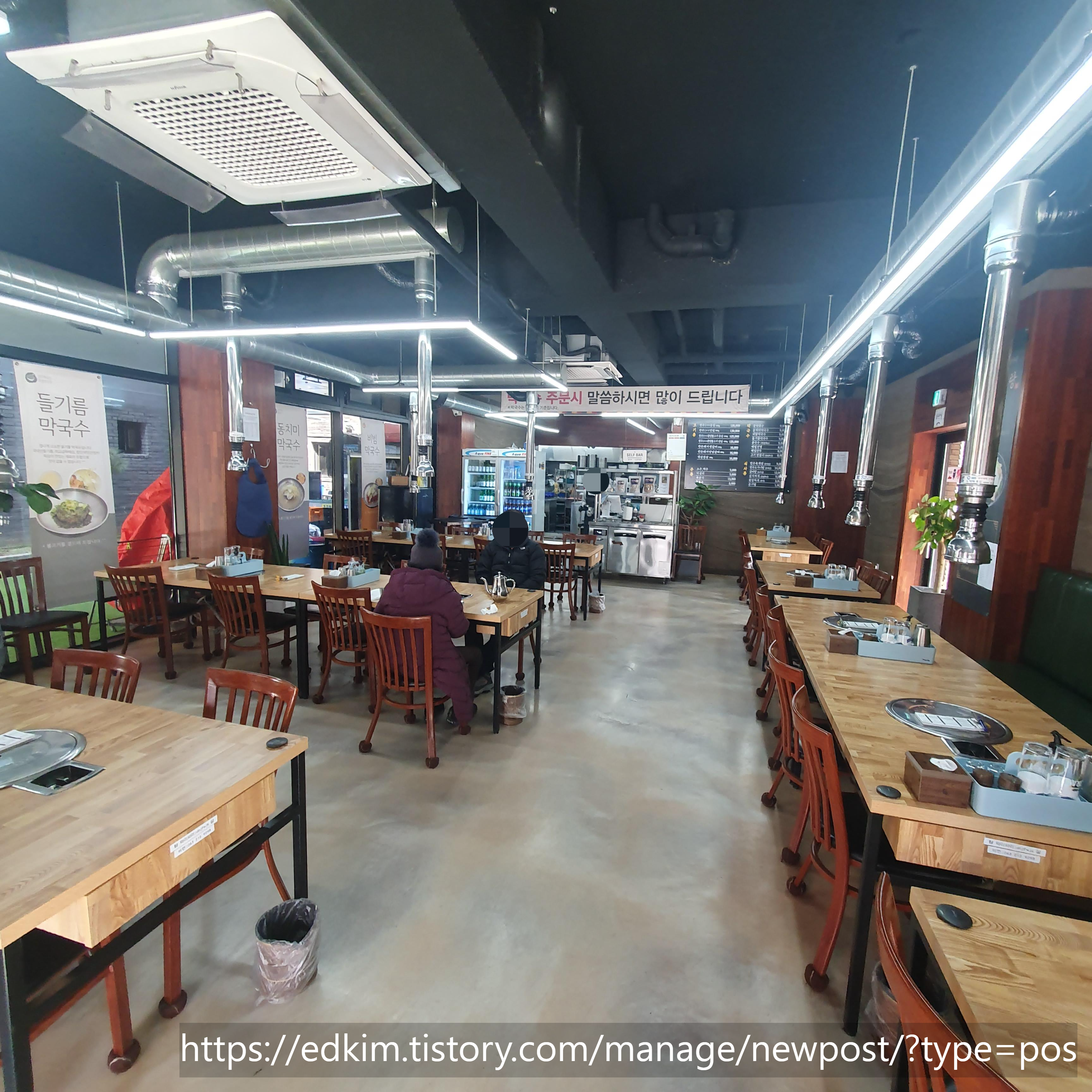 점심시간에 방문하였고, 한돈 돼지 생갈비와 물 막국수를 주문하였습니다.