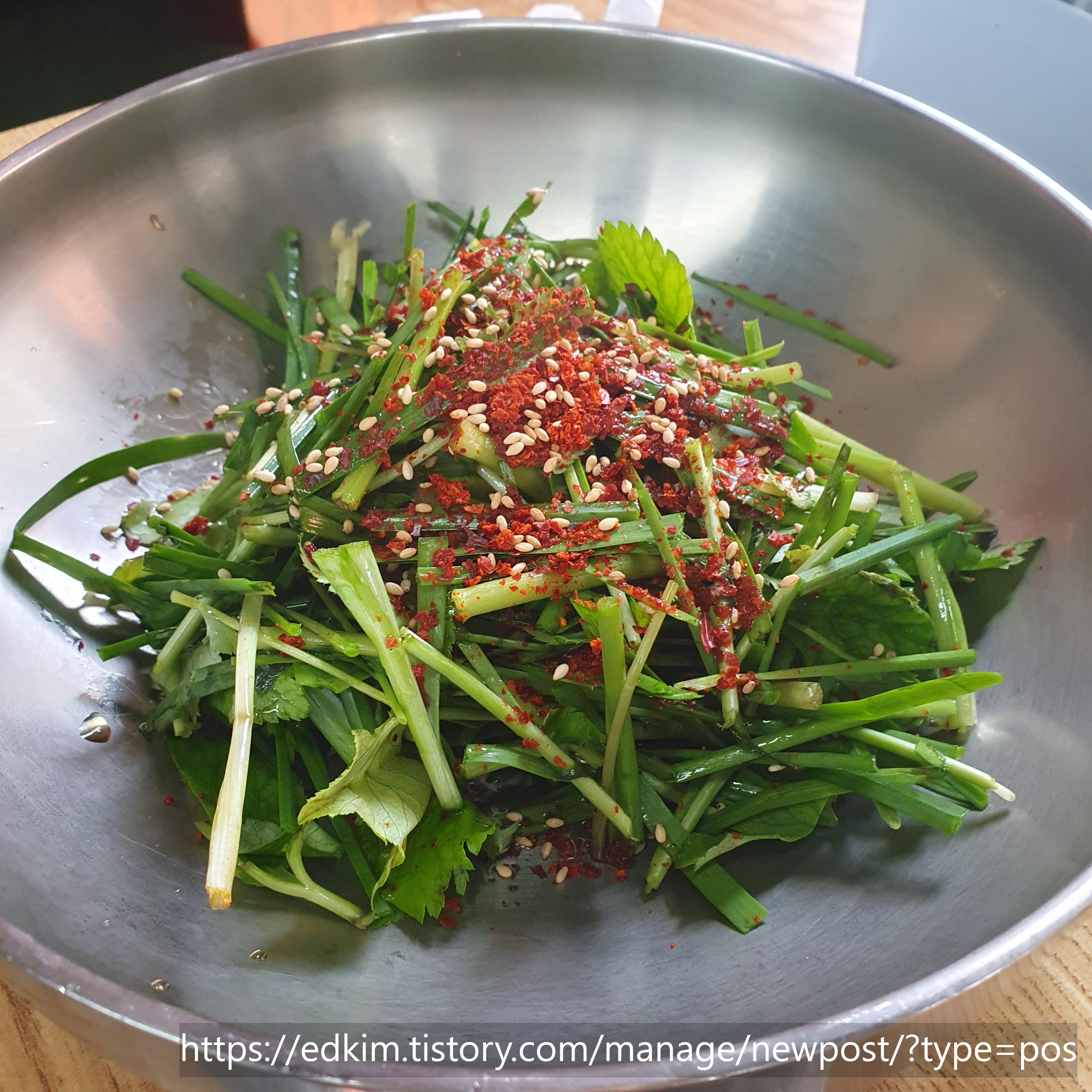 여기는 파채 대신 부추랑, 다른 채소가 들어가고, 양념을 따로 만들어서 버무린 것을 주셨는데,