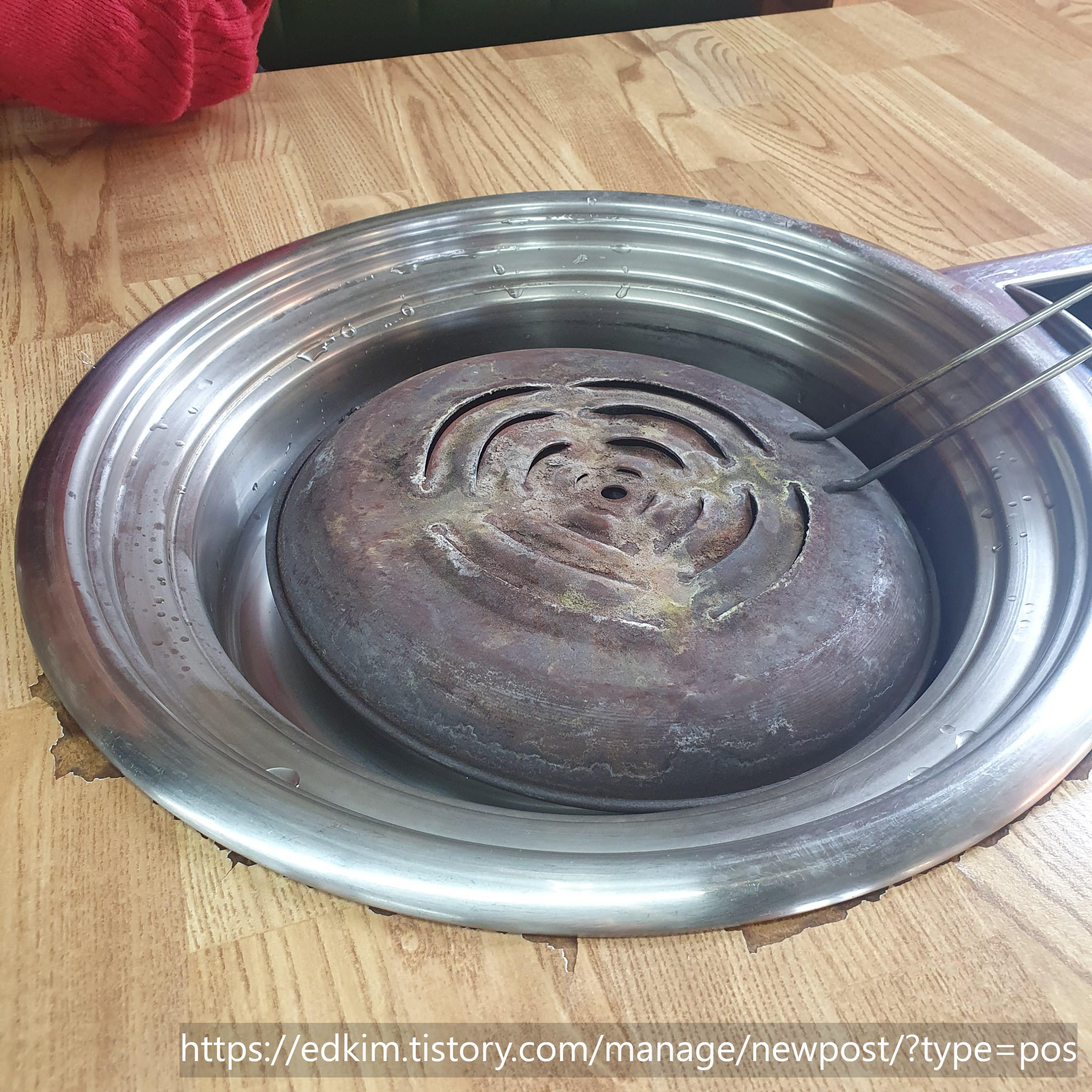 이건 뭔지 잘 모르겠는데, 숯이 달궈지는 동안 날리는 것을 막기 위해 하는 듯하였습니다.