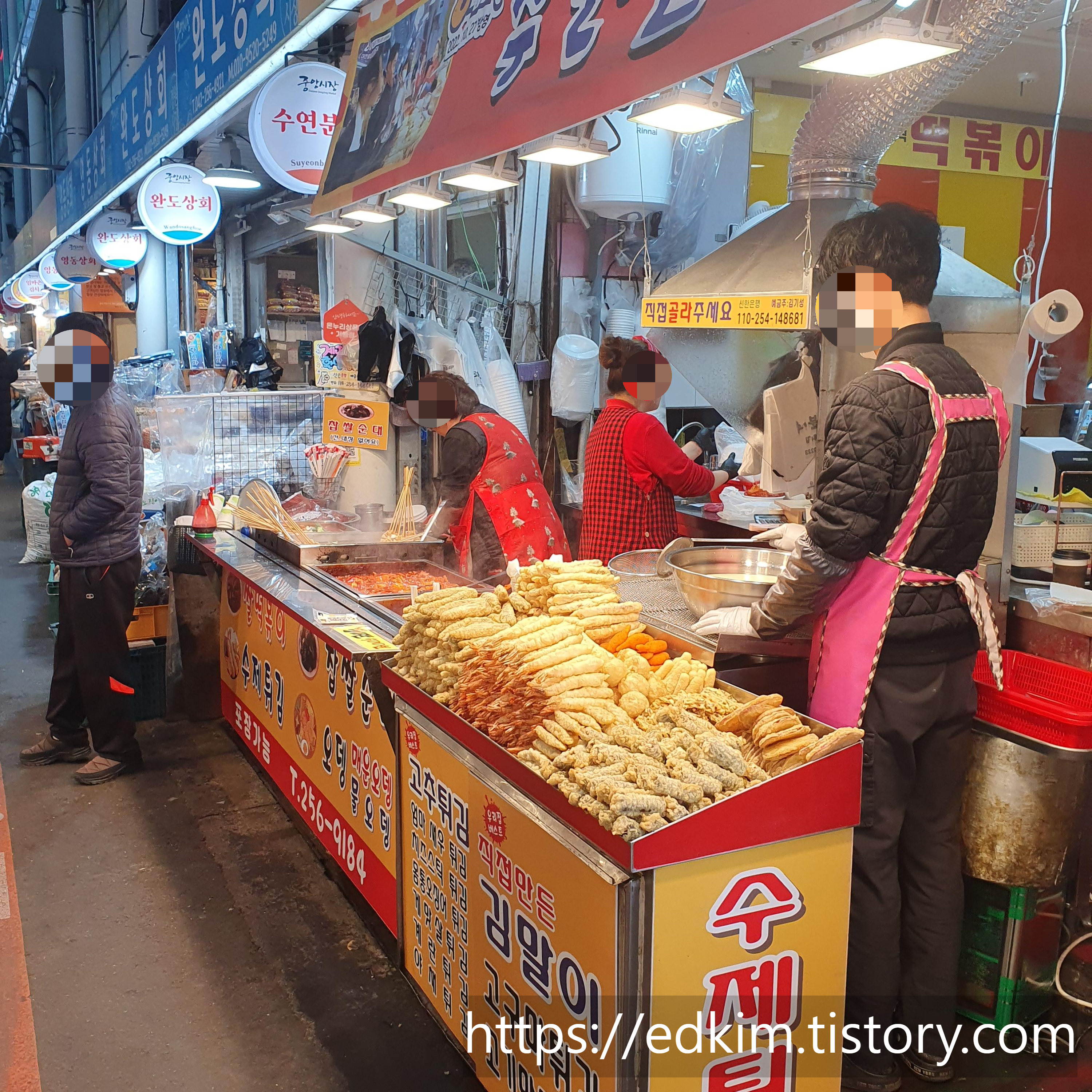 입구부터 튀김을 이렇게 산더미처럼 쌓아두시고 판매하시는데요,
